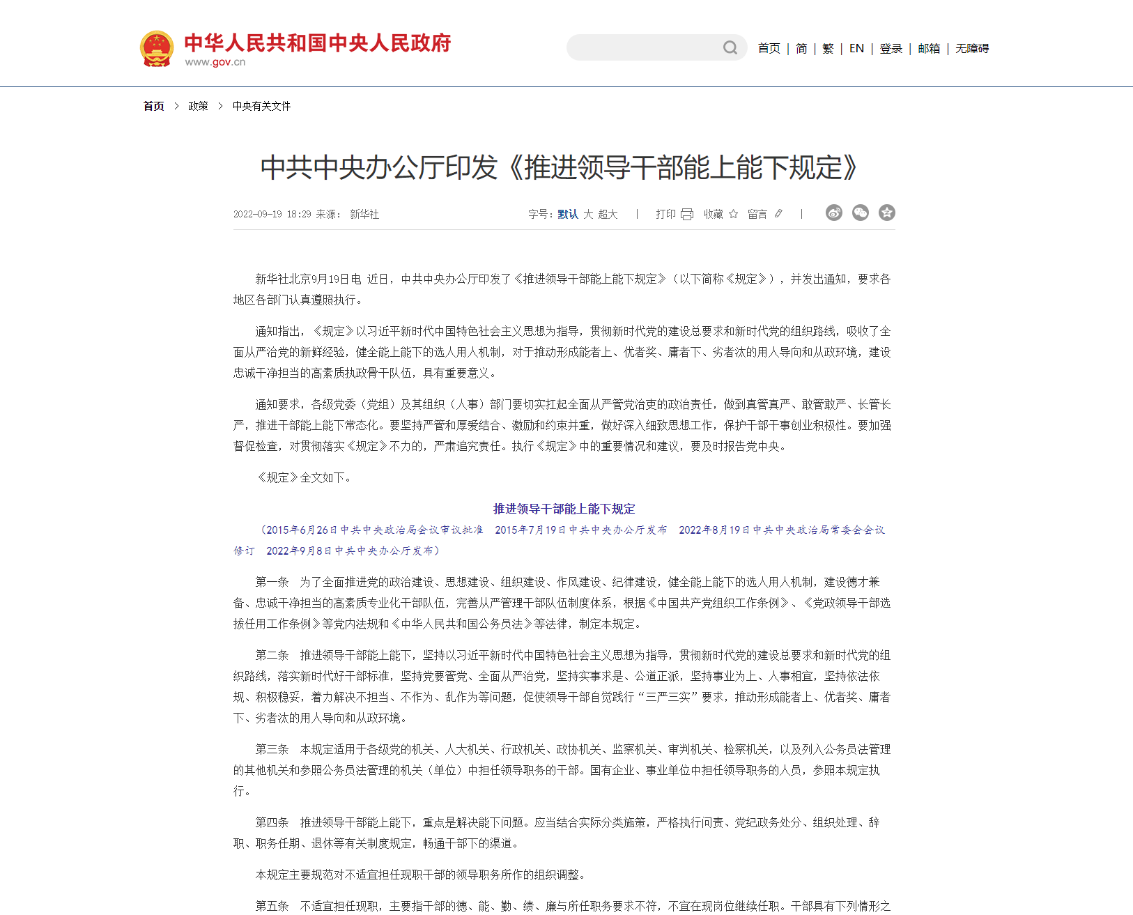 中國共產(chǎn)黨黨內(nèi)法規(guī)執(zhí)行責(zé)任制規(guī)定(試行)(2019年8月30日中共中央政治局會(huì)議審議批準(zhǔn)2019年9月3日中共中央發(fā)布) 第一條為了提高黨內(nèi)法規(guī)執(zhí)行力,推動(dòng)黨內(nèi)法規(guī)全面深入實(shí)施,根據(jù)《中國共產(chǎn)黨黨內(nèi)法規(guī)制定條例》,制定本規(guī)定。第二條各級(jí)黨組織和全體黨員負(fù)有遵守黨內(nèi)法規(guī)、維護(hù)黨內(nèi)法規(guī)權(quán)威的義務(wù)。各級(jí)黨組織和黨員領(lǐng)導(dǎo)干部必須增強(qiáng)“四個(gè)意識(shí)”、堅(jiān)定“四個(gè)自信...