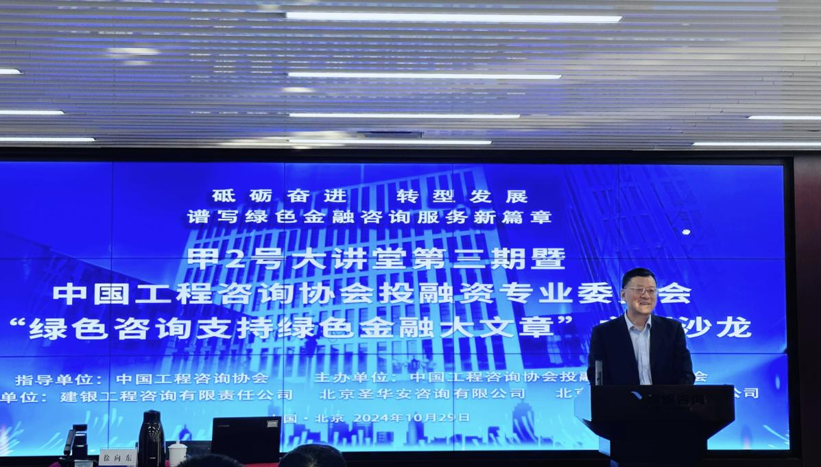 2024年10月29日,中國工程咨詢協(xié)會投融資專業(yè)委員會在北京成功舉辦了“綠色咨詢支持綠色金融大文章”主題沙龍。本次沙龍由建銀工程咨詢有限責(zé)任公司、北京財(cái)指南咨詢有限公司和北京圣華安咨詢有限公司承辦。建銀咨詢副總裁、執(zhí)行董事唐曉陽,業(yè)務(wù)總監(jiān)闕金聲、劉海濤等領(lǐng)導(dǎo)出席,沙龍活動由專委會秘書長闕金聲主持。