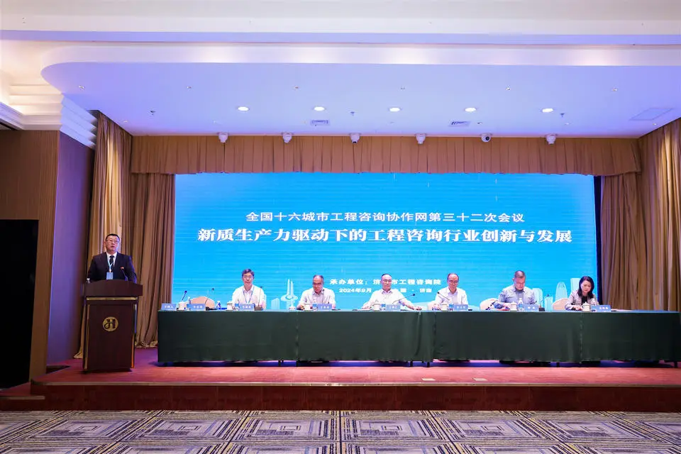 2024年9月26日—27日,全國十六城市工程咨詢協(xié)作網(wǎng)第三十二次會議在濟南市召開。本次大會由濟南市工程咨詢院承辦,大會主題是“新質(zhì)生產(chǎn)力驅(qū)動下的工程咨詢行業(yè)創(chuàng)新與發(fā)展”。全國十六城市工程咨詢協(xié)作網(wǎng)成員單位代表、部分省市綜合型工程咨詢單位代表以及特邀嘉賓100余人參加會議。濟南市工程咨詢院院長牛藝光主持會議。公司黨支部書記、執(zhí)行董事、總經(jīng)理陳崎虎帶隊參加本次大會并做交流發(fā)言。
