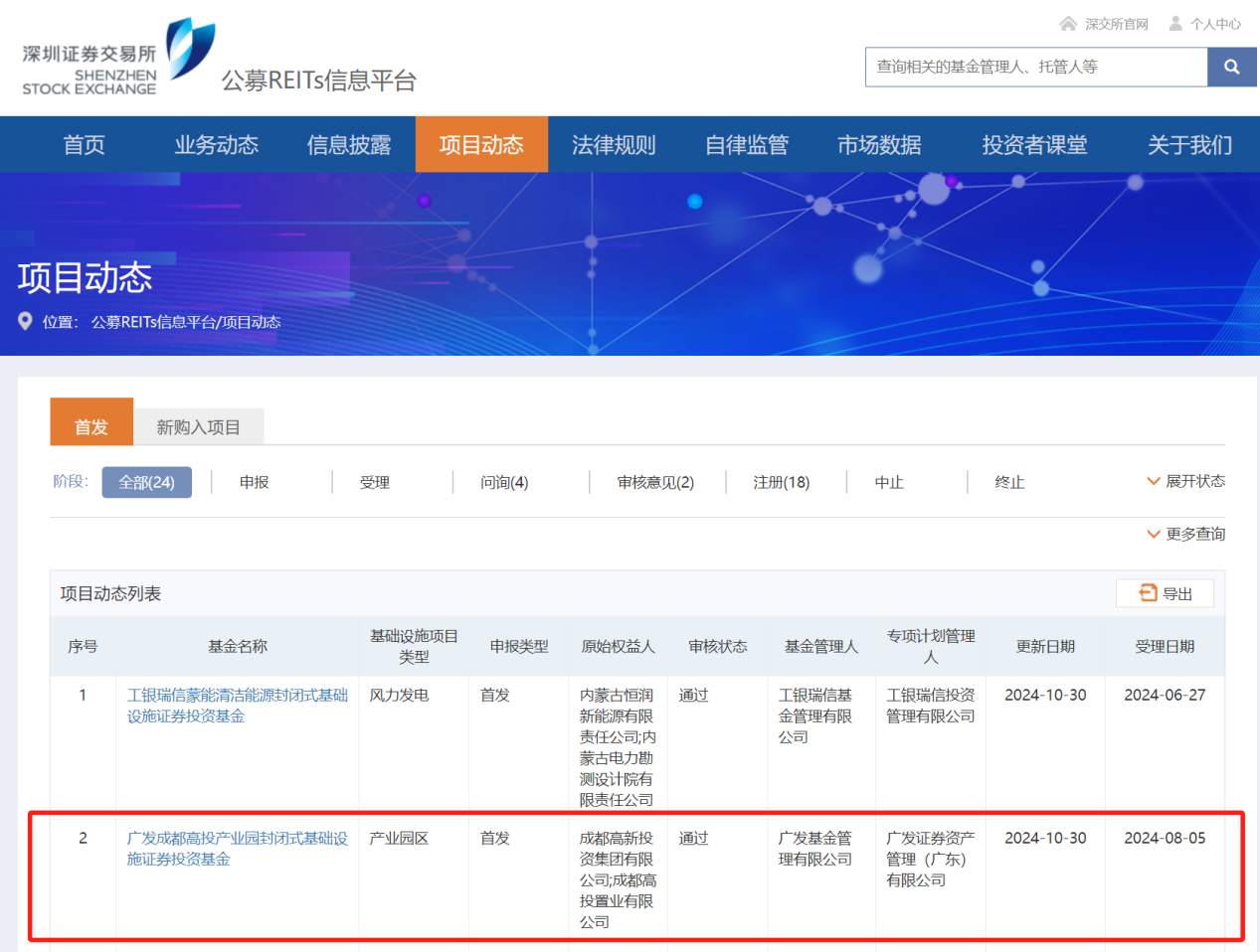 近日,據(jù)深交所官網(wǎng)顯示,廣發(fā)成都高投產(chǎn)業(yè)園封閉式基礎(chǔ)設(shè)施證券投資基金產(chǎn)品審核狀態(tài)為通過,標(biāo)志著成都高投集團(tuán)公募REITs項(xiàng)目已正式取得證監(jiān)會(huì)及交易所批復(fù)。